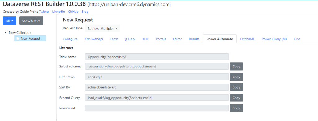 This builder not only helps to construct query expressions for Power Automate it also do lot of other formulations like OData query expression, Query Expression for C# code, FetchXML C# code and FetchXML for JavaScript code.