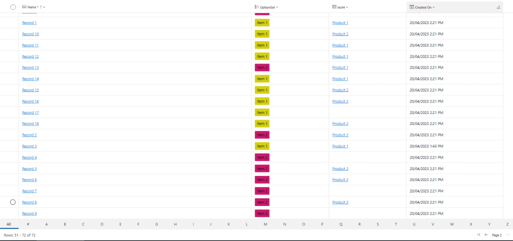 The Enable jump bar property can be used to display an alphabetic list at the bottom of views or subgrids. The default value is No, but users can select Yes to enable the jump bar.