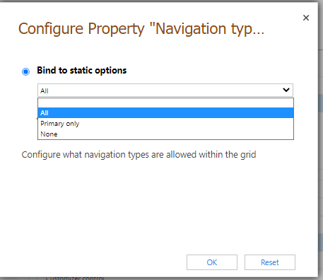 Lastly, the Navigation types allowed property determines which lookup controls in the grid render as hyperlinks. The default value is All, but users can select Primary only to suppress hyperlinks on all lookup fields except the primary column for the selected entity.