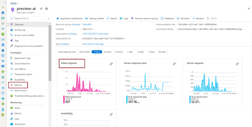 - Failures Panel: Identify and troubleshoot failed requests, with details on the operations and users affected.