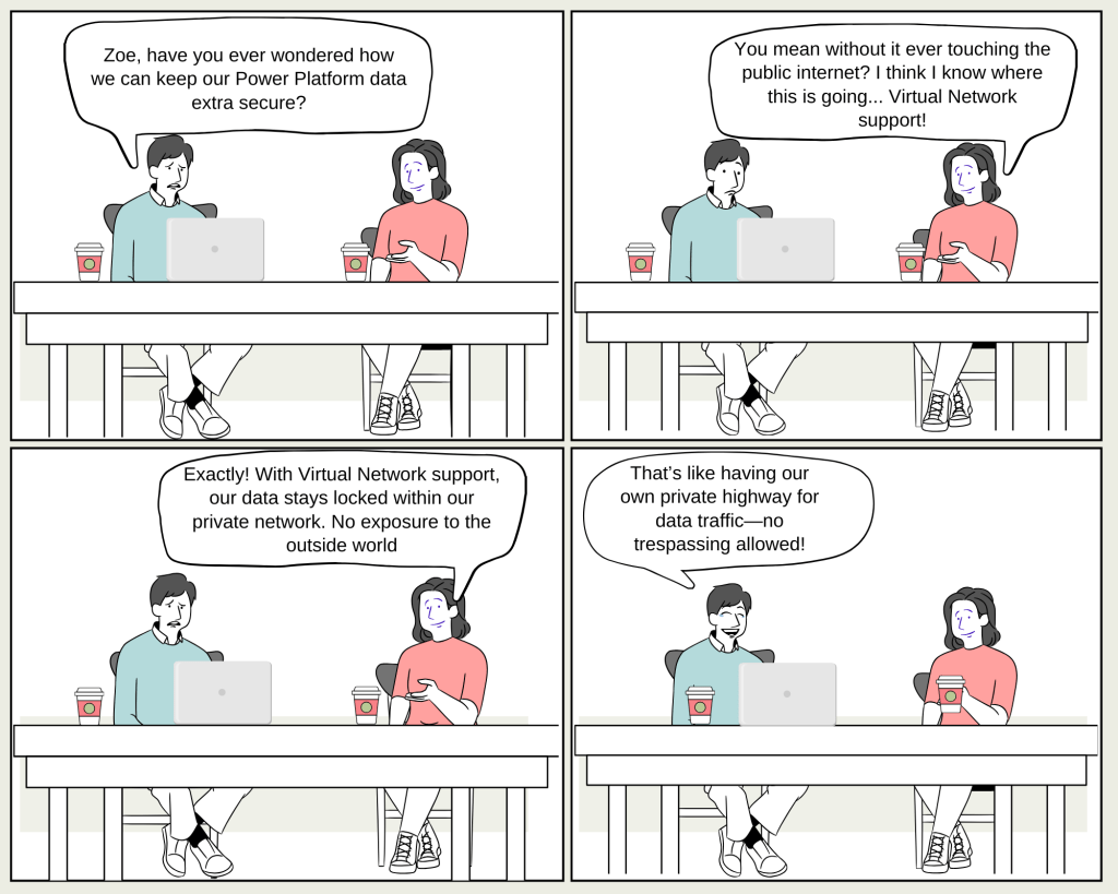 Max: “So, Zoe, I heard there’s a new way to keep our Power Platform resources super secure by using Azure Virtual Network. Can you break it down for me?”