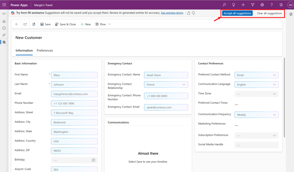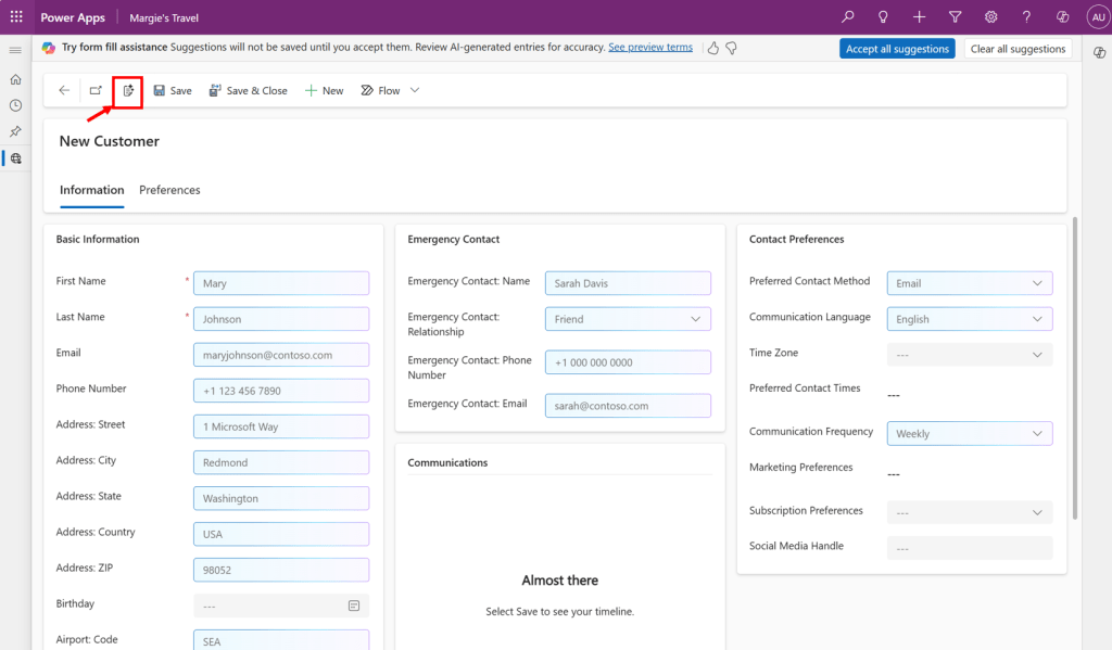 Filling out forms in model-driven apps just got easier with Copilot’s AI-powered form fill assistance! Whether you’re manually entering records or pasting data from another source, Copilot intelligently suggests values for text, numeric, choice, and date fields—helping you save time and reduce errors.