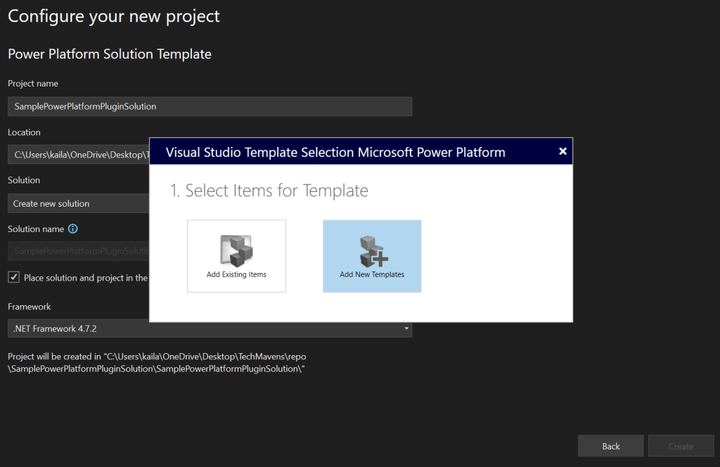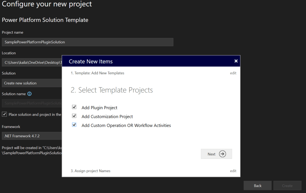 3. Choose it and click Next. Enter project details and choose a .NET Framework version (4.6.2+).