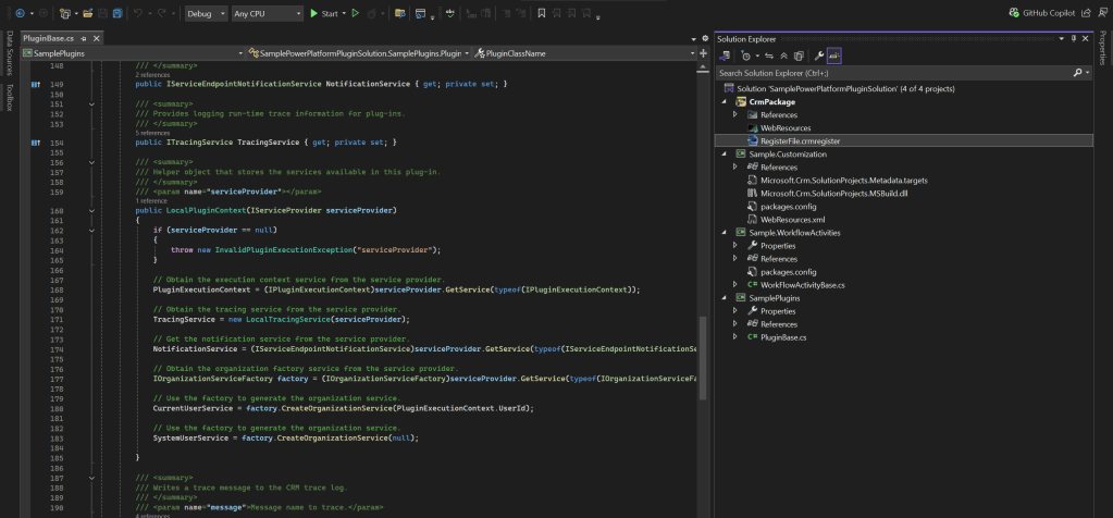 Power Platform Tools is a Visual Studio extension that simplifies plugin and workflow activity development by:
