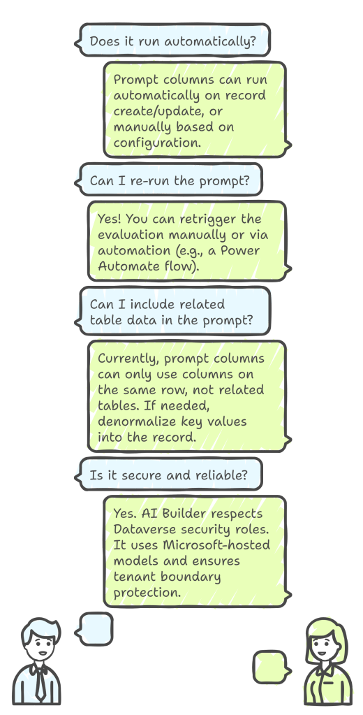 Prompt columns represent a paradigm shift in how we think about data modeling in the Power Platform. It’s no longer just about storing and relating data it’s about infusing intelligence into the data model itself.