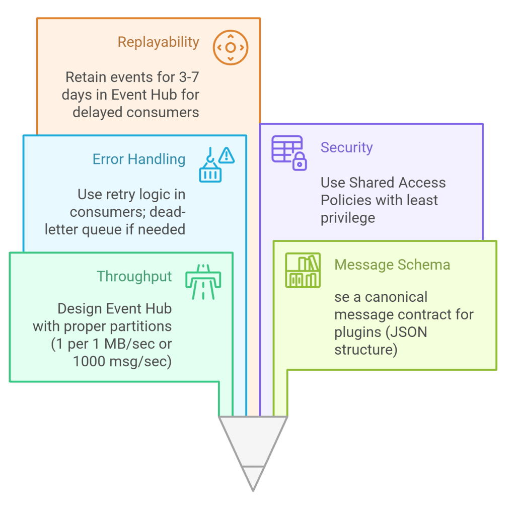 - Real-time or batch consumers (Stream Analytics, Databricks, Azure Functions, etc.)