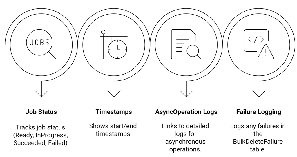 Every Bulk Delete job creates a BulkDeleteOperation record. This record: