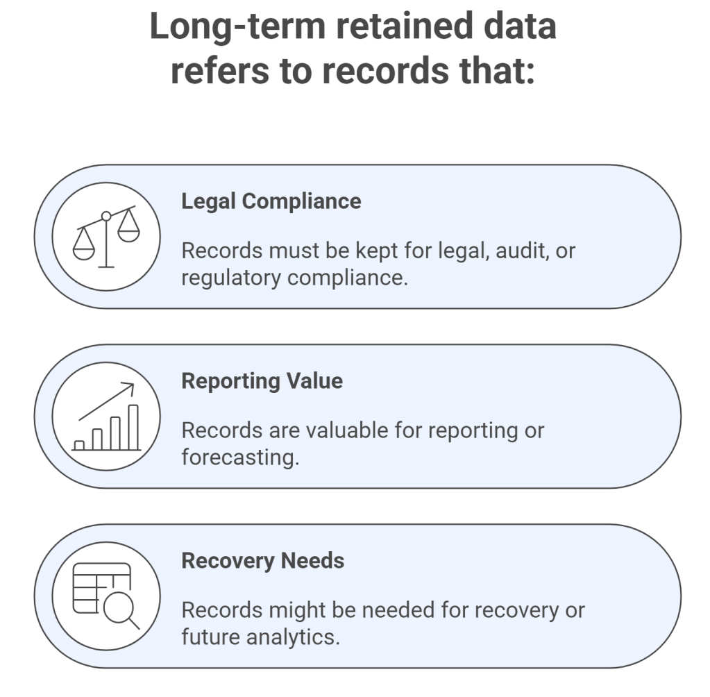🏥 Healthcare Records: Even if inactive, records cannot be deleted until retention threshold is passed